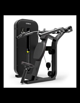 SPECIFICATII TEHNICE – Cadrul din oțel armat de 3 mm.- Tratament antirugină și protecție specială la punctele de sudură.- Acoperire cu pulbere de poliester la 200º în negru mat.- Polițe de transmisie FIBABS, cu rulmenți cu bile, realizate din material compozit foarte rezistent la frecare și adaptate la diametrul cablului.- Cablu de transmisie cu grosimea de 6 mm, extrem de flexibil și rezistent. Include tensor pentru reglarea tensiunii.- Protecție de încărcare termoformată față și spate, termoformată neagră capace de protecție a sarcinii.- Opțional: personalizarea capacelor.- Tavă dublă suport obiecte în partea superioară.- Scaunele și spătarele sunt nedeformabile sub presiune, realizate din poliuretan injectat (spumă).- Tapițerie antibacteriană MRSA, SANITIZATĂ, ignifugă Standard M2, UNE 1021 și fără solvenți și substanțe nocive Standarde OEKO-TEX. Cusături roșii intense.- Mânere de reglare realizate din aluminiu anodizat pentru a preveni rugina.- Mânere injectate cu material din cauciuc antiderapant, neporos.- Scaun anatomic reglabil prin piston cu gaz.- Goniometru din oțel inoxidabil cu 3 poziții pentru reglarea poziția de pornire/unghiul exercițiului.- Mișcare convergentă.- Ghidaje pentru plăci din oțel inoxidabil.- Plăci de 5 kg cu bucșe cu frecare redusă.- Selector de sarcină cu sistem de siguranță magnetic și cablu de siguranță.- Sarcina de lucru: 100 kg.- Pictogramă de descriere a exercițiului.- Cod QR cu acces la video de utilizare a mașinii.- Dimensiuni: 147 x 127 x 157 cm.- Declarație de conformitate CE.- Utilizare comercială.