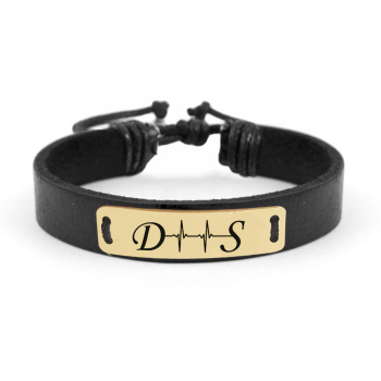 Pulse – Bratara personalizata piele puls si initiale argint 925 placat cu aur galben 24K