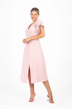 Rochie casual roz din vascoza cu maneca scurta reglabila