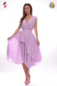 Rochie de ocazie de culoare lila cu lungimea midi croita in clos usor asimetrica confectionata din material fluid(triplu voal) vaporos cu talia marcata decolteu adanc in V . Deosebita si diafana iti va oferi un look spectaculos la cele mai selecte evenimente.Caracteristicirochie vaporoasacroiala clos lungime midifermoar la spateprodus romanescIntretinereRespectati instructiunile de curatare de pe eticheta produsului.Info model: poarta marimea S inaltime 170 cm.