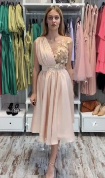 Rochie eleganta confectioanata din material vaporos de culoare roz pudra cu lungimea midi croita in clos cu partea superioara cambrata prevazuta cu broderie perle si flori 3D la bust.Caracteristici:inchidere cu fermoarbust buretatintaritura la talielungime asimtericadublura vaporoasaIntretinereRespectati instructiunile de curatare de pe eticheta produsului.Info model: poarta marimea S inaltime 170 cm.Produs romanesc