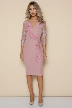 Rochie MBG Collection de ocazie conica de lungime midi confectionata din material usor elastic prevazuta cu broderie 3D si perle maneci trei sferturi. Caracteristici:material elastic croi conicinchidere cu fermoar la spateIntretinere:Respectati instructiunile de curatare de pe eticheta produsului.Info model:inaltime 170 cm poarta marimea S.Produs fabricat in Romania.