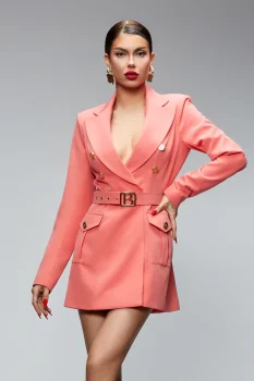 Rochie eleganta tip sacou de culoare somon accesorizata cu centura detasabila
