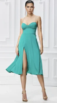 Rochie midi eleganta verde cu spatele gol si slit pe picior