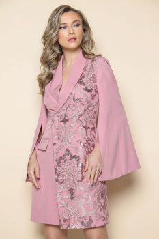 Rochie sacou roz cu maneci despicate si broderie pretioasa