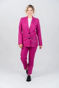 Sacou casual roz cu buzunare laterale