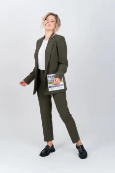 Sacoul verde kaki Beauty takes the city este conceput dintr-o stofa subtire si este extrem de versatil fiind usor de integrat atât într-o tinuta casual cât si într-una formala.Are o forma dreapta rever si doua buzunare laterale cu refilet.Se închide cu doi nasturi negri.Inscriptiile de pe partea din fata transforma sacoul într-unul cu adevarat special.Îl poti integra în tinute diferite cu blugi pantaloni de piele fusta sau o rochie.IntretinereRespectati instructiunile de curatare de pe eticheta produsuluiInfo model: inaltime 170cm poarta marime SProdus romanesc.