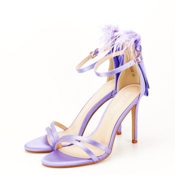 sandale – stiletto din material textil sidefat, interior din piele ecologica, talpa din piele ecologica, are o bretea in jurul gleznei, se inchide cu catarama, varf rotund, toc subtire, decorati cu pene INALTIME TOC – 10.5 cm, NUANTA – mov sidefat,…