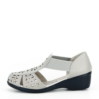 sandale gri din piele naturala de calitate; perforatia din extrerior este de decor; captuseala interioara nu este perforata; exterior din piele naturala; interior din piele naturala; talpic din piele naturala; pe partile laterale are doua benzi…