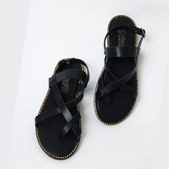 sandale cu talpa joasa din piele naturala de calitate, exterior piele naturala, interior piele naturala, talpic din piele naturala, se inchid cu o bareta cu catarama la baza piciorului, are doua barete incrucisate, care vin in jurul degetului…