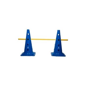 Acest set pentru antrenament este format din doua conuri multifunctionale si o bara. Puteti folosi conurile pentru exercitii de agilitate sau puteti forma obstacole conectand bara la cele doua conuri in functie de preferinte. Cele doua conuri prezinta gauri situate la inaltimi diferite, astfel incat sa puteti regla inaltimea obstacolului cum doriti. Specificatii: Dimensiuni conuri: 27.5 x 50.5 cm Dimensiuni bara: 100 x 2.5 cm Material: bara din PVC, conuri din PE Culoare: conuri albastre, bara galbena Producator: Sveltus