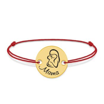 Silvia – Bratara personalizata din snur cu banut din argint 925 placat cu aur galben Mama si bebe