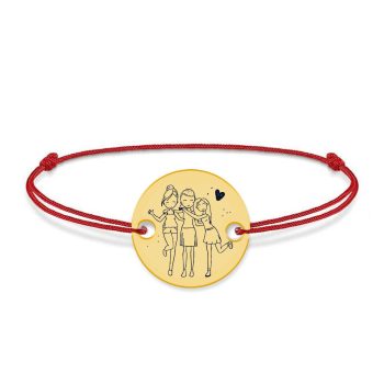 Sisters- Bratara snur personalizata cu banut din argint 925 placat cu aur galben 24K pentru surori