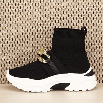 exterior din material textil, material textil la interior, talpic din material textil, talpa de spuma si cauciuc durabila care asigura aderenta marita cu suprafata, este prevazut cu accesoriu metalic auriu, varf rotund, inaltime talpa 5 cm, NUANTA…