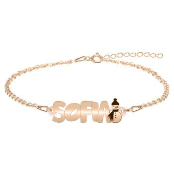 Snowman – Bratara pentru copii din argint 925 placat cu aur roz personalizata cu nume
