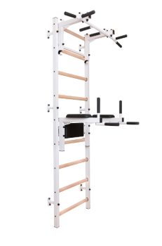 Spalier BenchK 732W, cu bara de tractiune convertibila din otel cu 6 manere, bara joasa cu suport pentru spate,ideal pentru antrenamentul abdomenului, spatelui si bratelor. Echipament multifuncțional care economisește spațiu, cu un design inovator și elegant. Va fi util pentru antrenamentul cu greutatea corporală de toate tipurile, fie că este vorba de forță, rezistență, mobilitate sau întindere.Spalierele de perete BenchK se potrivesc perfect într-o locuință modernă, dar respectă și standardele UE de siguranță pentru echipamentele profesionale de gimnastică. Sunt certificate pentru utilizare în instituții publice, inclusiv săli de sport profesionale, centre de antrenament al forțelor armate, hoteluri, școli, spitale și multe altele. Accesorii:Bară de tracțiune din oțel reglabilă cu 6 prinderi, bară joasa cu suport pentru spateBara de tractiune are cârlige căptușite cu pâslă pentru a preveni marcarea treptelor din lemn. Datorită construcției sale detașabile, bara de tragere poate fi poziționată pe diferite trepte și ajustată la înălțimea utilizatorului. Bara de tragere are șase mânere anti-alunecare, ceea ce permite o gamă largă de tipuri diferite de trageri, precum și exerciții de condiționare a miezului, spatelui și umerilor.Când este rotit cu 90 de grade, poate fi folosit ca suport pentru spate.Cotierele stației cu bară de scufundare și suportul pentru spate sunt realizate din spumă poliuretanică integrală. Acest lucru le garantează durabilitatea, ușurința de curățare și aspectul modern.Atât bara de scufundare, cât și bara de tragere pot fi ajustate la înălțimea utilizatorului sau pot fi îndepărtate complet, dacă este necesar.