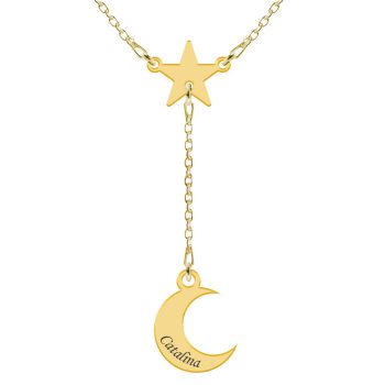 Star- Colier personalizat din argint placat cu aur galben 24K cu cristal – Stea si luna