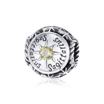 Material: Argint 925 Placaj: Rodiu Diametru: L=l ; 11mm x 11mm Grosime: 11mm Greutate aprox: 2.12g Tip talisman: Charm Pietre: Zirconiu Talisman specific zodiei Sagetator