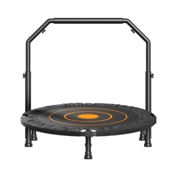 Trambulina fitness cu diametru de 100cm este ideala pentru exercitii de grup in cadrul claselor de adulti si copii, dar si acasa. Manerul de sprijin poate fi reglat de la 100 la 125 cm pentru a satisface nevoile intregii familii. Calitate ridicata a materialelor folosite asigura o rezistenta de pana la 150 kg. Se poate strange si depozita rapid in trei pasi, fiind pliabila total. Specificatii: Diametru: 100cm, 80 cm spatiu pentru sarit Numar arcuri din otel: 34 Inaltimea de la sol: 21,2cm Greutate max utilizator: 150 kg Material special pentru sarit, anti-zgarieturi si antiderapant Prinderi din otel de inalta calitate Maner de siguranta ce poate fi reglat de la 100 la 125 cm Picioarele de sprijin pot fi indepartate prin rotire, perfect pentru depozitare Structura din otel zincat, absorbtie a socurilor, antiderapant si silentios Culoare: negru cu portocaliu Greutate: 8 kg, cu tot cu ambalaje 9 kg Dimensiune colet: 39*12*77cm Producator: Merach