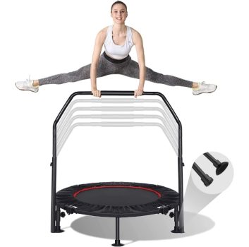 Trambulina fitness cu diametru de 121 cm este ideala pentru exercitii de grup in cadrul claselor de adulti si copii, dar si acasa. Manerul de sprijin poate fi reglat de la 68 la 86 cm pentru a satisface nevoile intregii familii. Calitate ridicata a materialelor folosite asigura o rezistenta de pana la 110 kg. Specificatii: Diametru: 121 cm, 95 cm spatiu pentru sarit Numar arcuri din otel: 32 Inaltimea de la sol: 21,5 cm Greutate max utilizator: 110 kg Material special pentru sarit, anti-zgarieturi si antiderapant Prinderi din otel de inalta calitate Manerul de siguranta poate fi reglat pe inaltime de la sol de la 90 cm la 110 cm Dimensiuni maner de siguranța de la nivelul trambulinei: minim 68 cm, maxim 86cm Picioarele de sprijin pot fi indepartate prin rotire, perfect pentru depozitare Structura din otel zincat, absorbtie a socurilor, antiderapant si silentios Culoare: negru cu rosu Greutate: 9 kg, cu tot cu ambalaje 11 kg Producator: Dayu Fitness