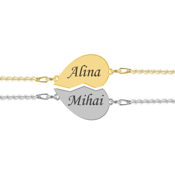You and Me – Set bratari personalizate inimioara cu nume pentru cuplu din argint 925